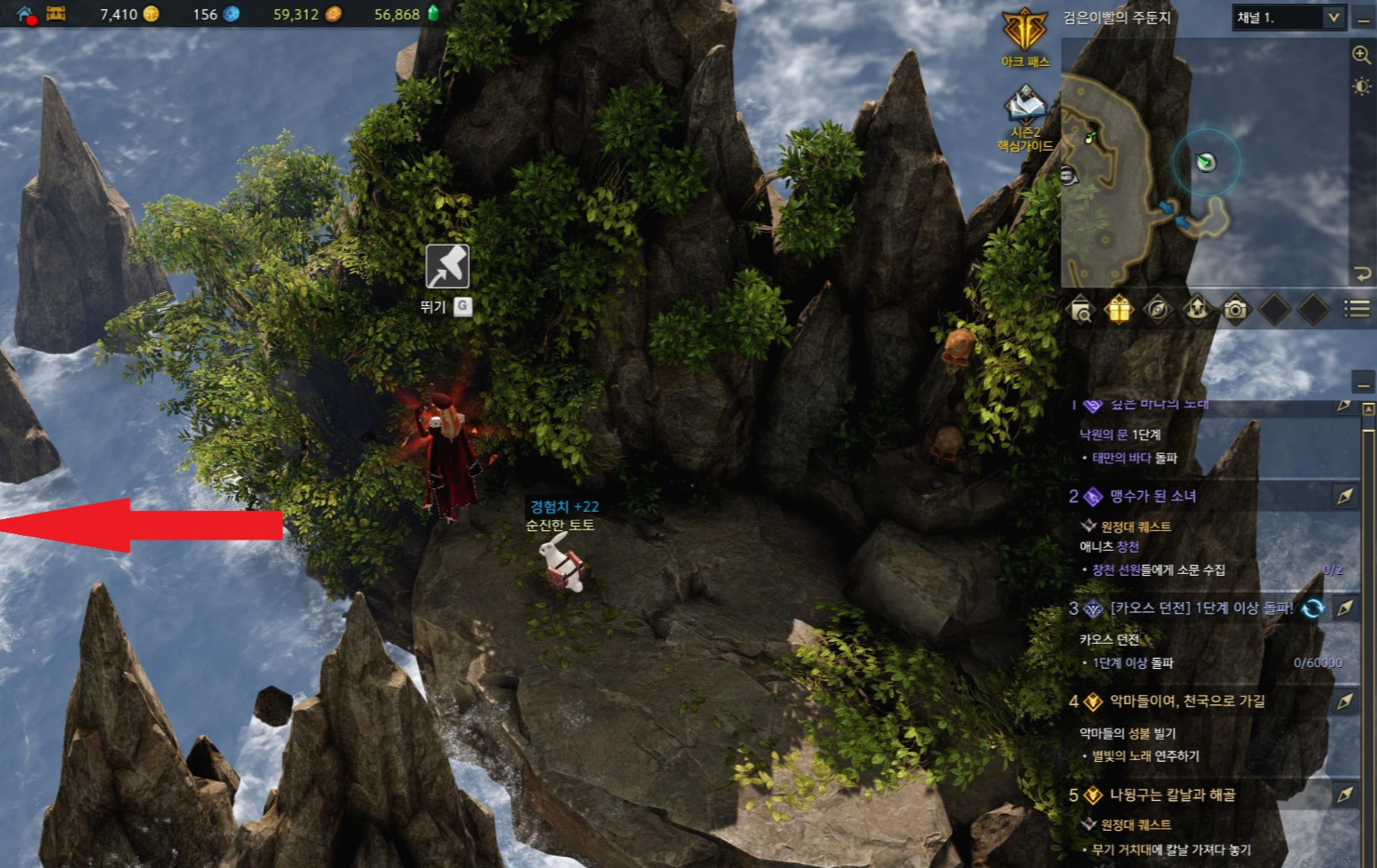 모코코 세부 위치(사진에 위치한 제 캐릭터 위치로 가시면 점프가 가능합니다)