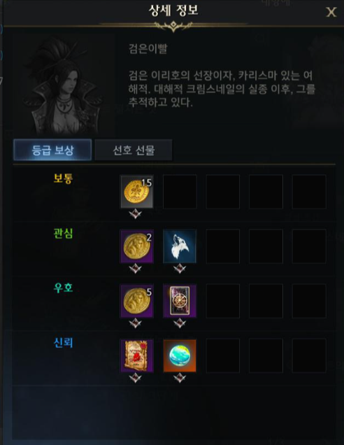 검은이빨의 주둔지의 섬의 마음은 [검은이빨] 호감도를 신뢰로 올리시면 획득이 가능하며, 추후에 사용하실 아스트레이 선원으로 검은이빨을 사용할 수 있는 선원증도 함께 받을 수 있습니다.