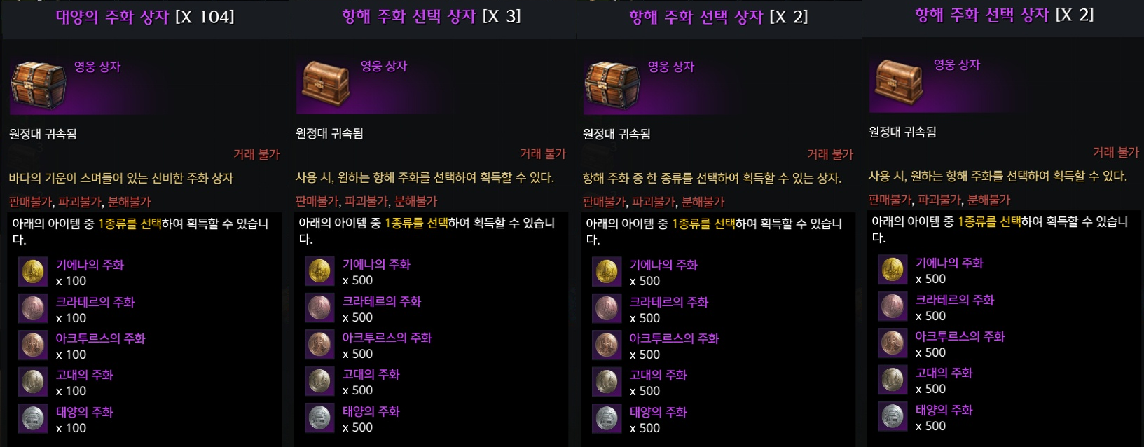 [태양의 주화]로 교환할 때 가장 많은 해적주화를 받을 수 있으니, 주화상자를 열어서 해적주화를 구하시는 분들은 꼭 참고해주시길 바랍니다.