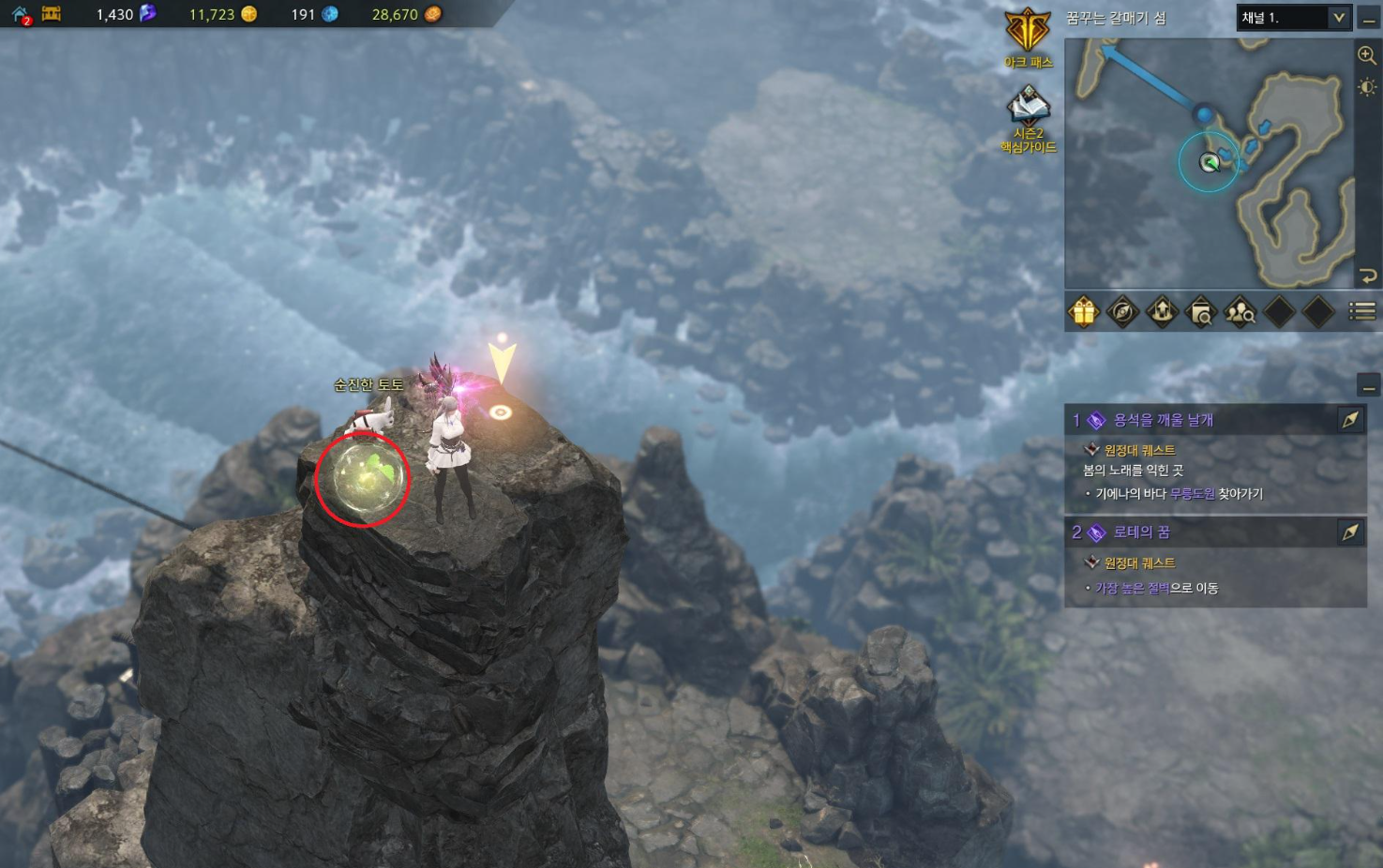 섬의 마음은 섬 내 퀘스트를 진행하면 획득이 가능하고, 모코코는 별다른 조건없이 획득할 수 있는 간단한 섬이지만, 퀘스트가 ..... ㅠ_ㅠ 스포일러는 자재하겠습니다. 섬을 한 6~8바퀴정도 도셔야해요.