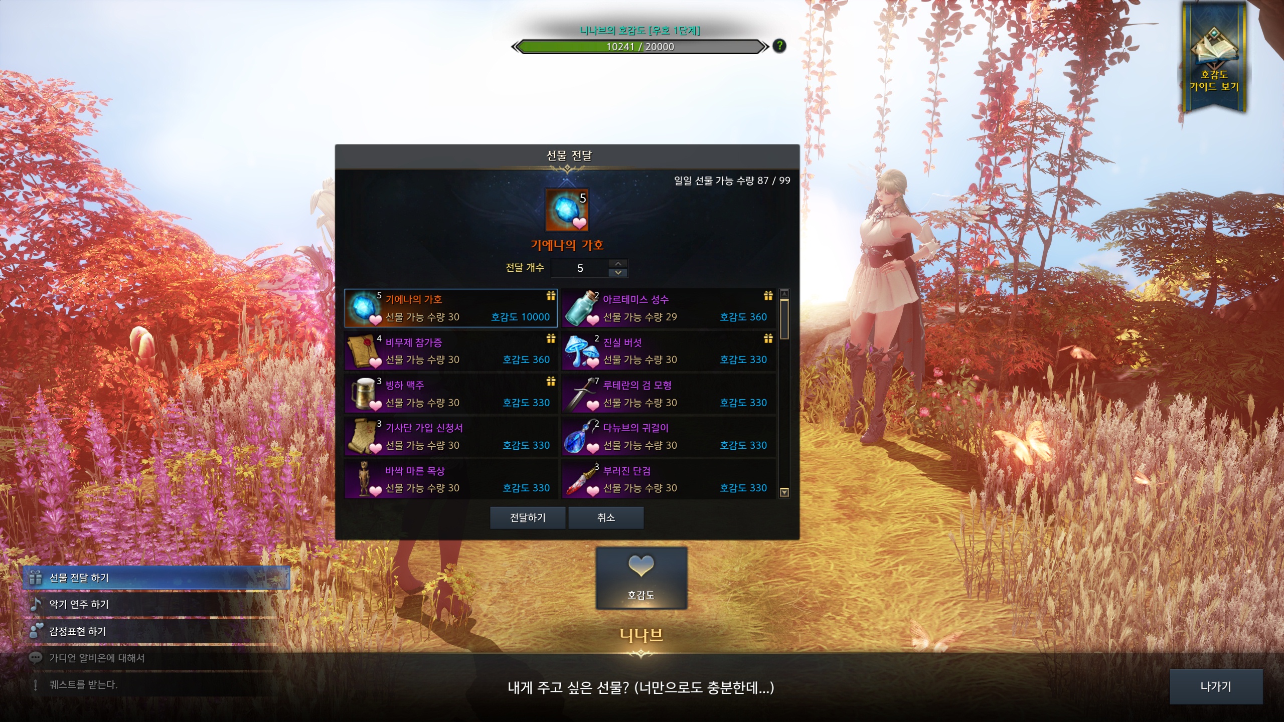 니나브의 신뢰까지의 호감도 총합은 왠만한 NPC 3명은 신뢰만들수 있는 수치입니다. 너무 높은거아냐?..ㅠㅠ