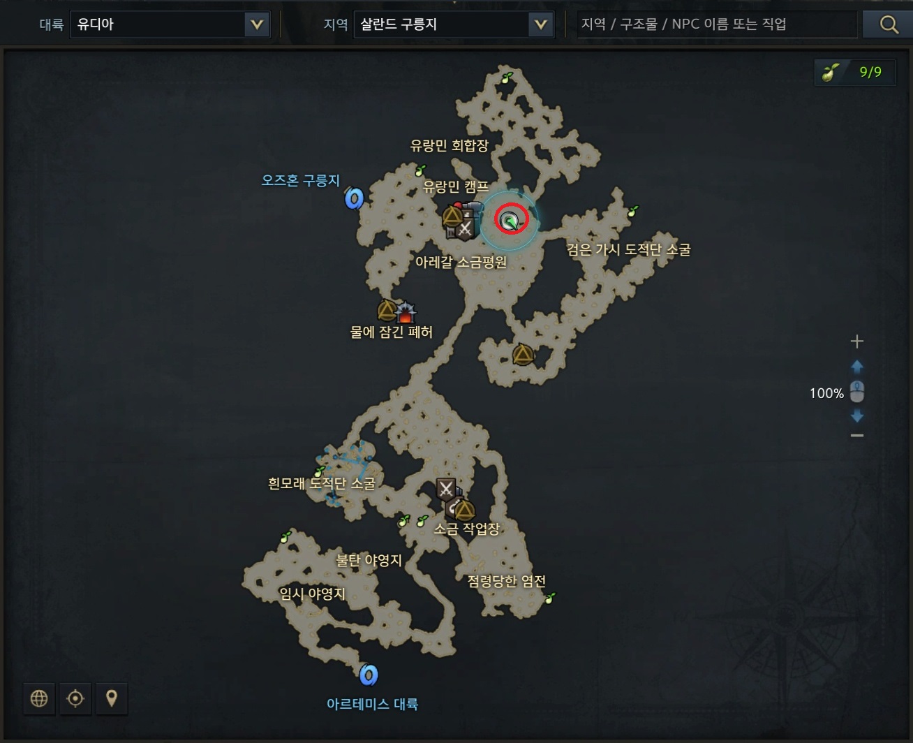 소금거인은 유디아 지역의 살란드 구릉지에서 팝업됩니다. 처치 후 30~40분 이후 젠됩니다.