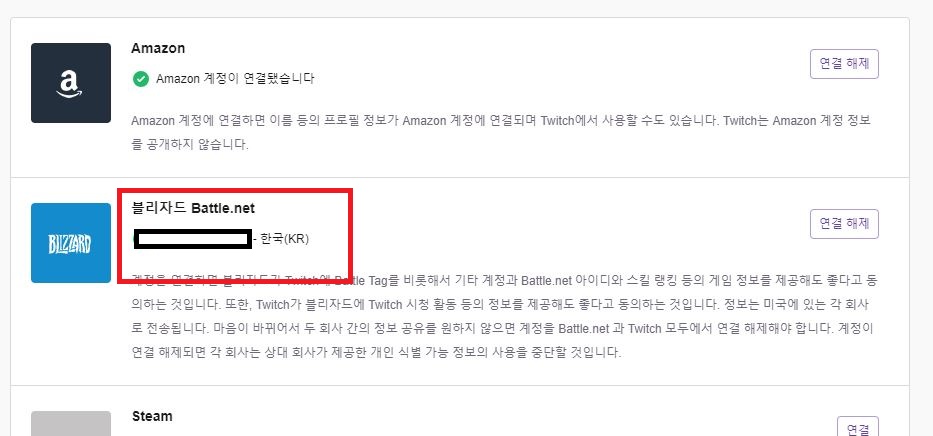저기에서 연결된 제 계정을 확인할 수 있습니다. 배틀태그가 일치하는지 확인하세요!
