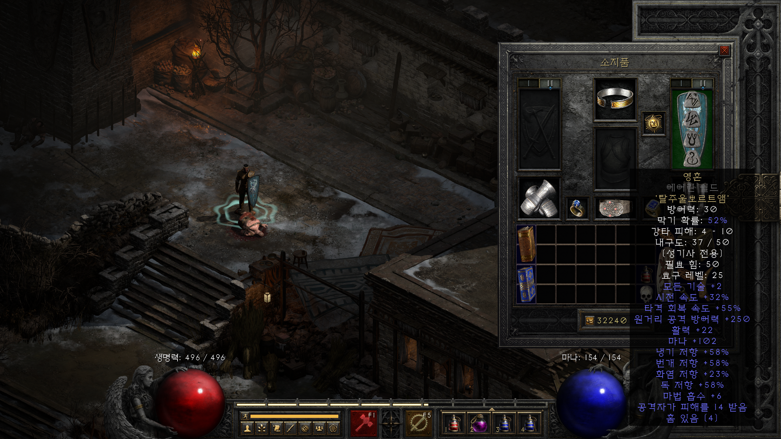 그때 저항이 너무 모자라 진행이 어려울 때 아주 유용하게 사용할 수 있습니다. 스텔스와 마찬가지로 저레벨때도 제작이 가능하고, 엑트 5에서 2번째 퀘스트를 완료하면 룬도 획득이 가능합니다.